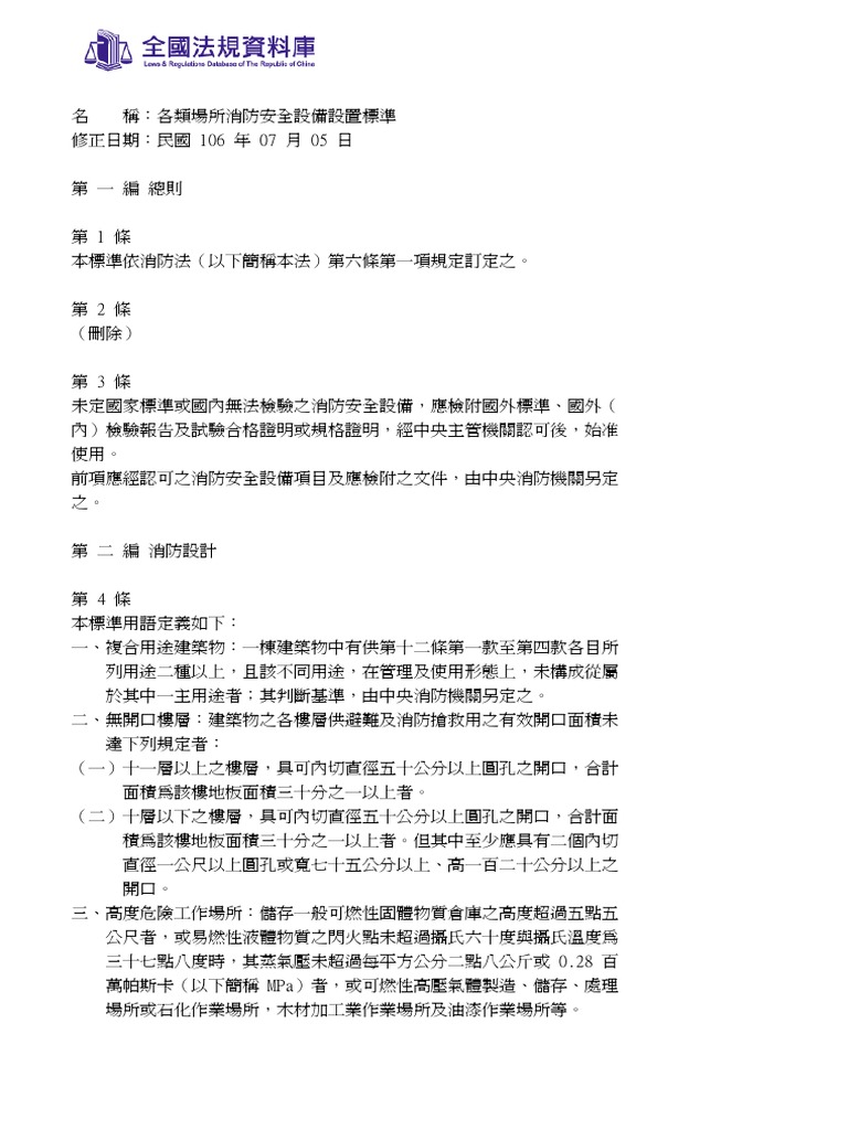 1各類場所消防安全設備設置標準 Pdf